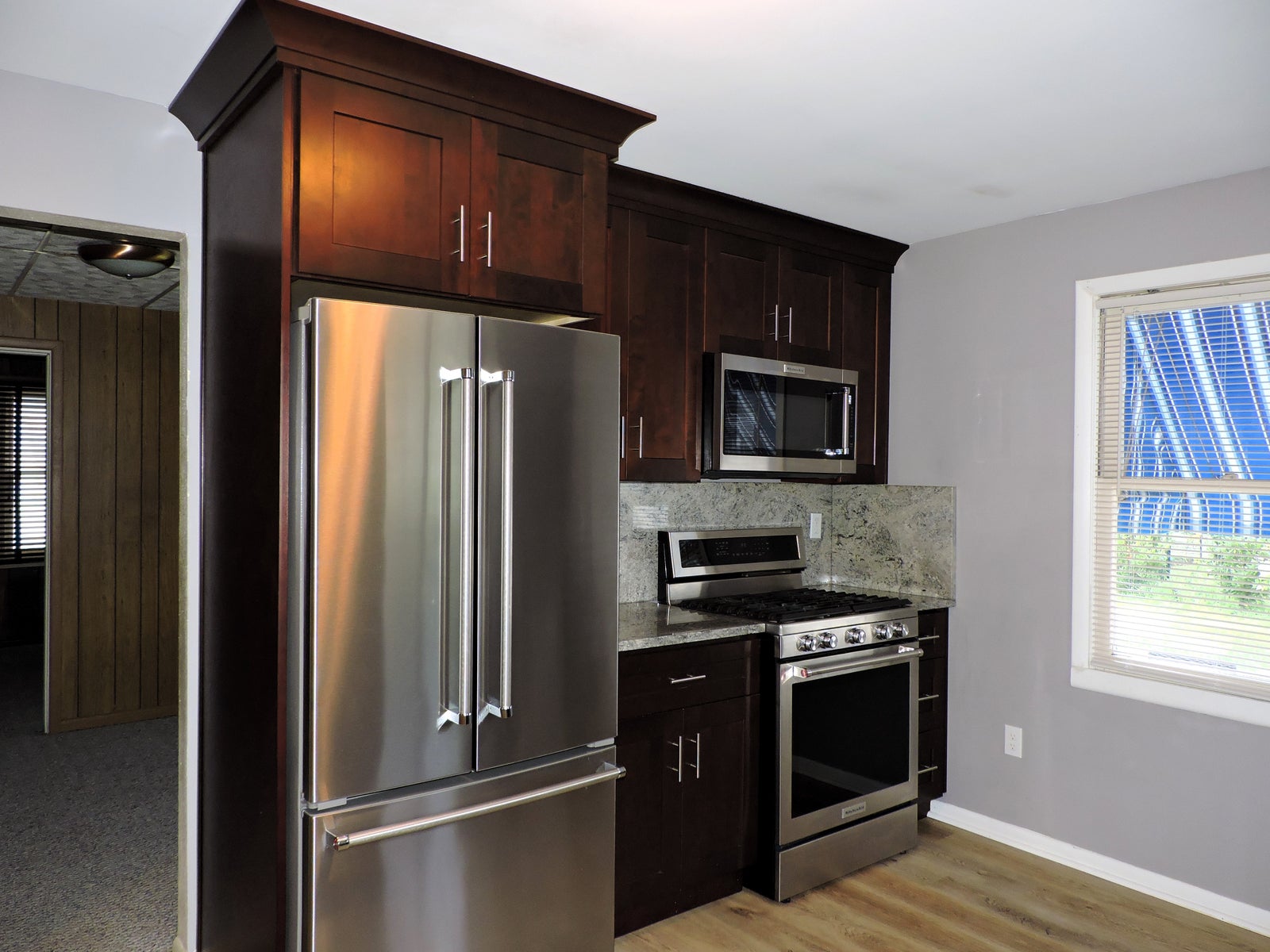 Spacious 4-bedroom, 2-bath split-level home featuring a stunning living room with vaulted, beamed ceilings and a versatile bonus area perfect for a sitting room or teen hangout. The beautifully updated kitchen boasts 42-inch cabinets, new appliances and modern finishes. Convenient main-floor bedroom includes a tandem room ideal for an office or nursery. Upstairs you’ll find two guest bedrooms and a remodeled full bath with a luxurious two-person shower. The finished lower level offers an additional bedroom, full bath, and laundry area. Outside, enjoy a fenced yard with room to relax or play, all within walking distance to the lake and park/playground.
