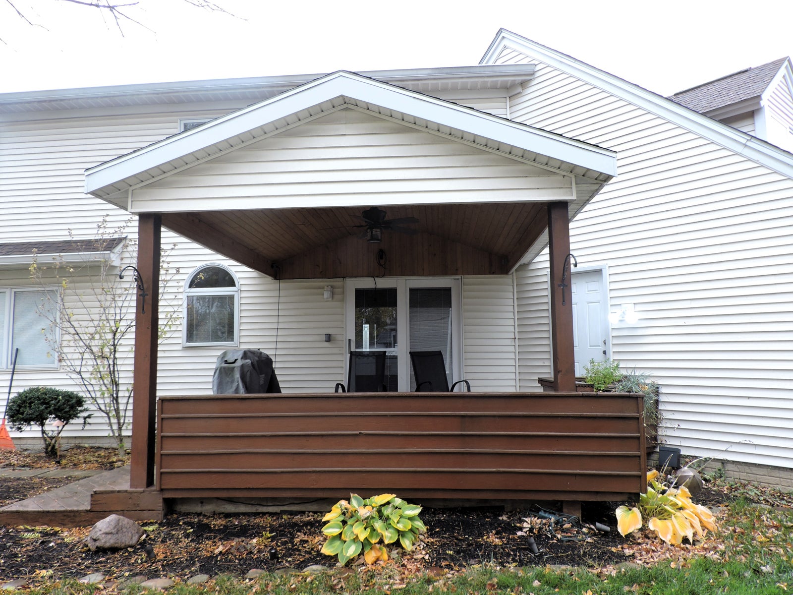 Welcome to this stunning custom 3-bedroom, 2.5-bath home offering comfort, space, and style throughout. The inviting eat-in kitchen includes all appliances and opens to a formal dining room with sliding doors leading to a covered deck with a wood ceiling, ceiling fan, and natural gas grill—ideal for year-round enjoyment and perfect for entertaining. The spacious living room features a cozy gas fireplace and abundant natural light. The main floor also includes a convenient laundry room. The lower level offers a versatile family or recreation room, providing additional living space. Upstairs, the primary suite boasts a walk-in closet and a private bath with an updated vanity and tile. Two additional bedrooms, each with walk-in closets, share a full bath. A loft area adds flexible space for an office, reading nook, or play area. Notable updates include Pella windows with built-in blinds, new carpeting, and a lifetime roof (installed 2009). This home combines quality craftsmanship with thoughtful updates, making it a true standout.