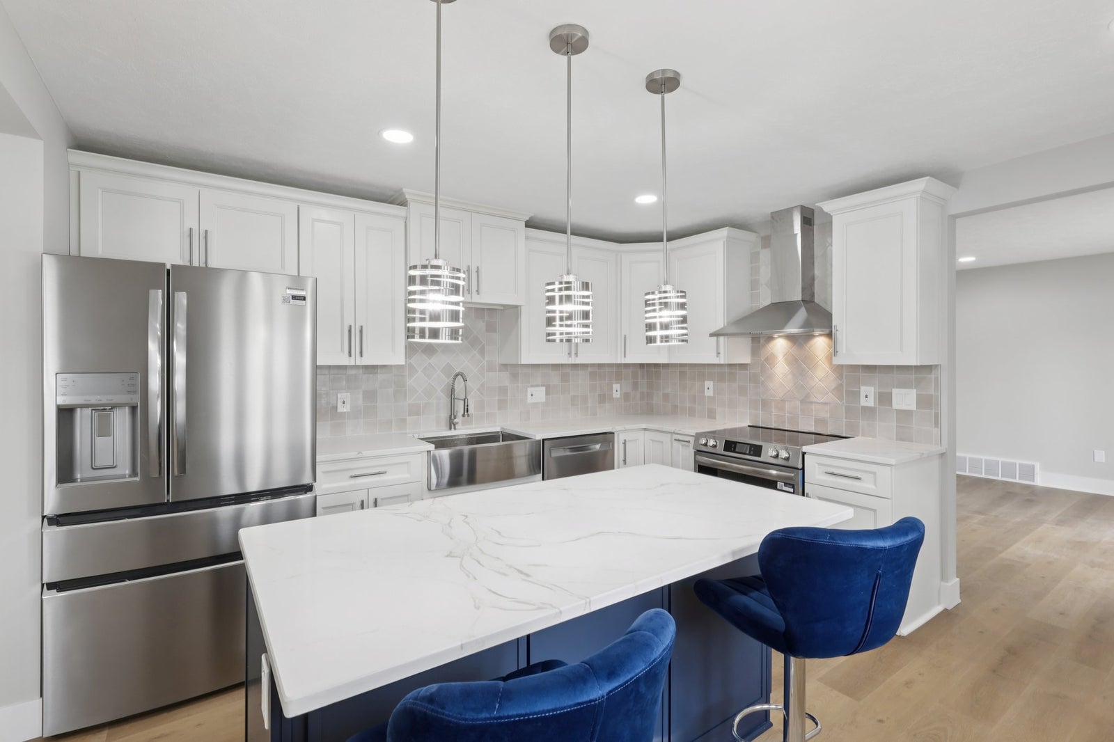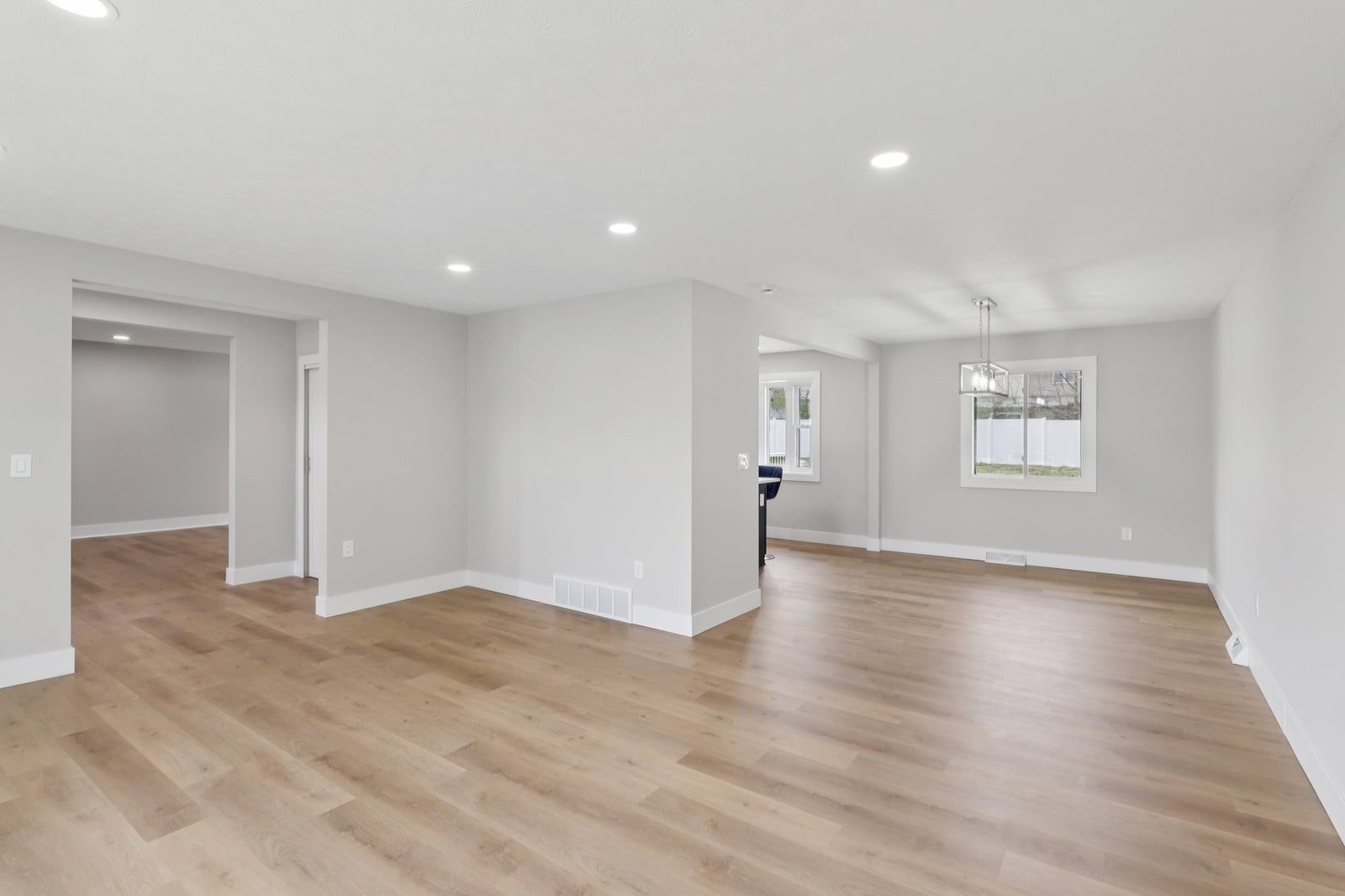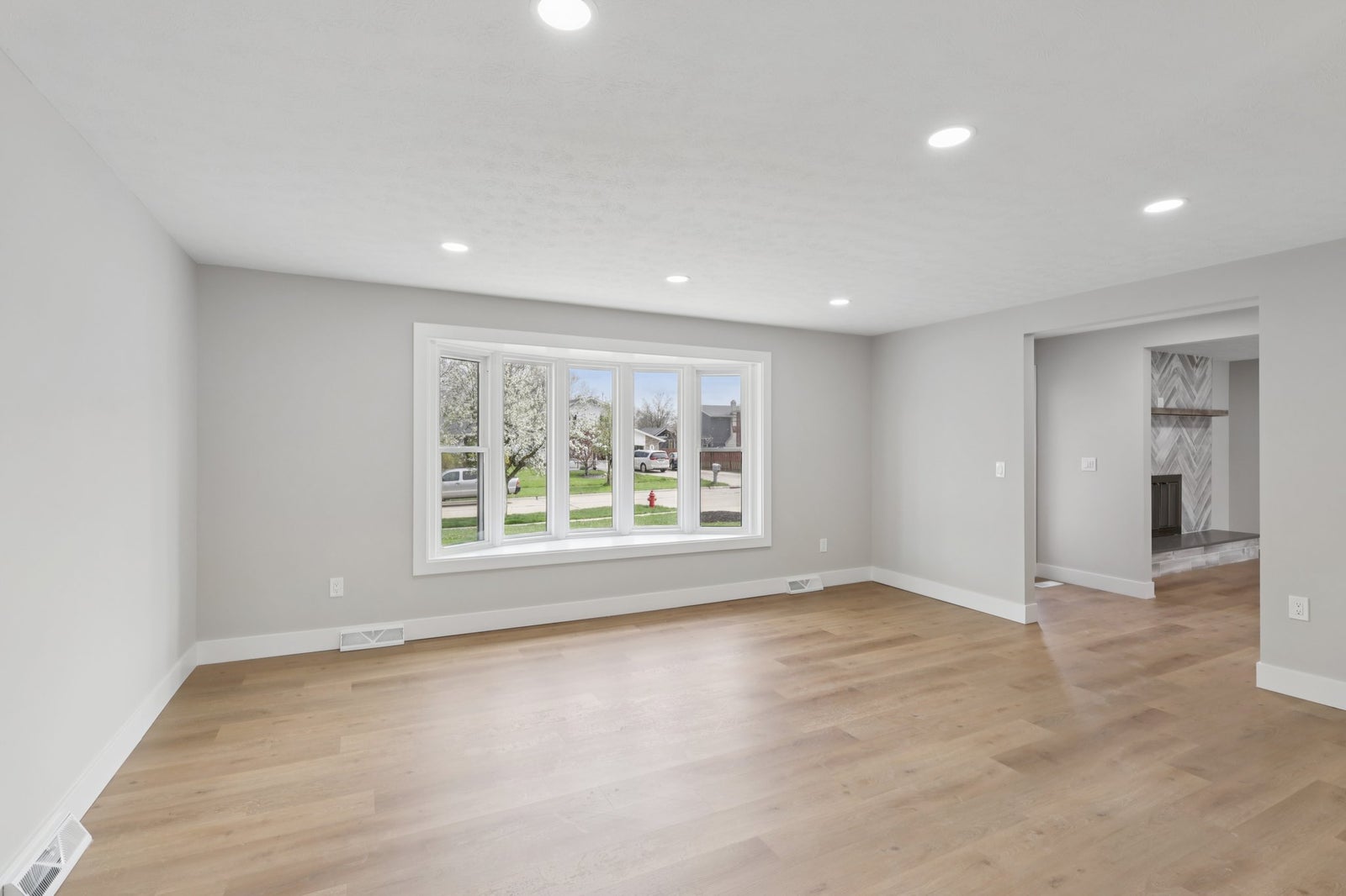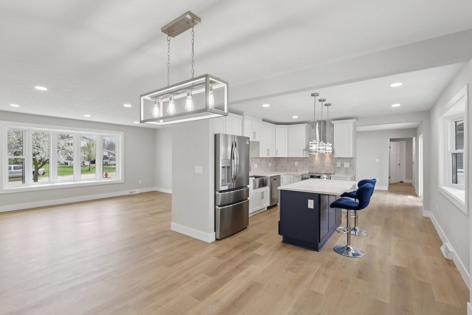 Completely updated and move-in ready! This stunning 3-bedroom, 2 full bath ranch offers the perfect blend of modern style and comfortable living. From the moment you arrive, you’ll appreciate the fresh exterior and inviting curb appeal. Step inside to a bright, open layout featuring all new flooring, fresh paint, updated lighting, and stylish fixtures throughout. The spacious living room is filled with natural light from the large picture window and flows seamlessly into the beautifully redesigned kitchen. The kitchen is a showstopper with white cabinetry, stainless steel appliances, tile backsplash, and a large center island—perfect for entertaining or everyday living. The main level also features a cozy living room with a striking fireplace accent wall and dining room with sliding doors leading to the backyard, creating an ideal indoor-outdoor connection. Three comfortable bedrooms and two fully updated baths complete the main floor. The finished basement expands your living space with a large recreation area and a sleek modern fireplace—perfect for a media room, game space, or additional entertaining area. Every detail has been thoughtfully updated, offering a truly turnkey home you won’t want to miss!